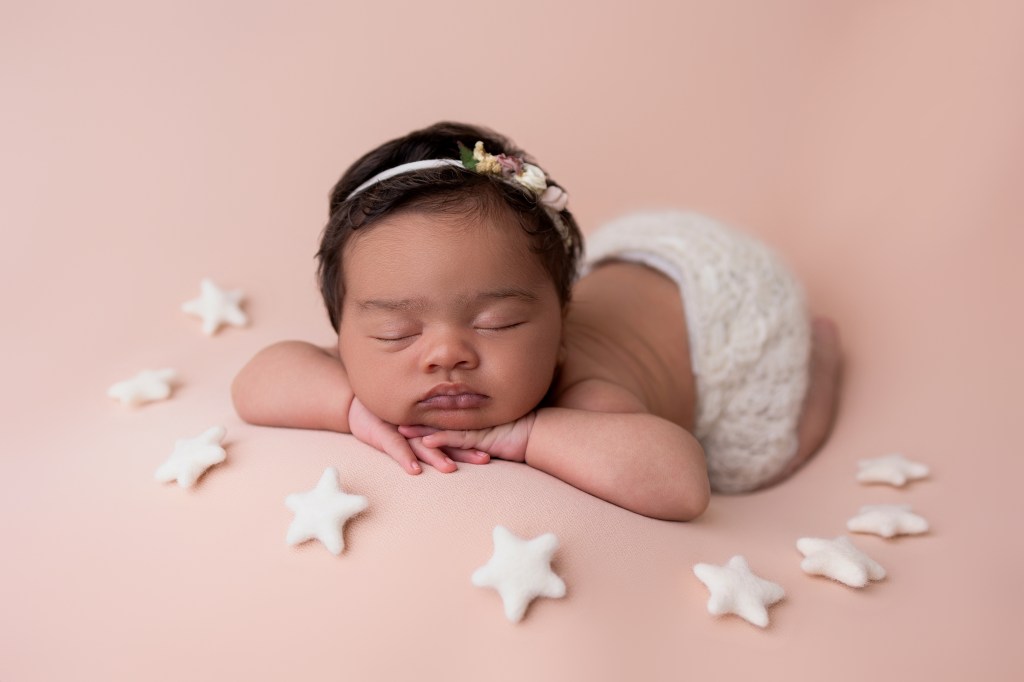 As an experienced newborn photographer, we know how to handle and pose your baby safely. Trust us to guide the session, and please don’t worry if things don’t go exactly as planned. We’re here to capture the beauty of your baby, no matter what. White noise will be playing as background noise to disguise sudden noises or movements. Sometimes we have to go with the baby’s mood and temperament on the day, which could dictate the poses that are possible to achieve. Please don’t worry if this happens, and try to go with the flow, afterall the final gallery of images will still blow your mind with adorableness of your little one. Sometimes the order of capturing poses and setups might seem not to your preference, but these are done in a certain way to ensure you have many images in your gallery of a content baby, which also allows your baby to fall into an even deeper sleep meaning trickier poses may be more likely towards the end of the session.